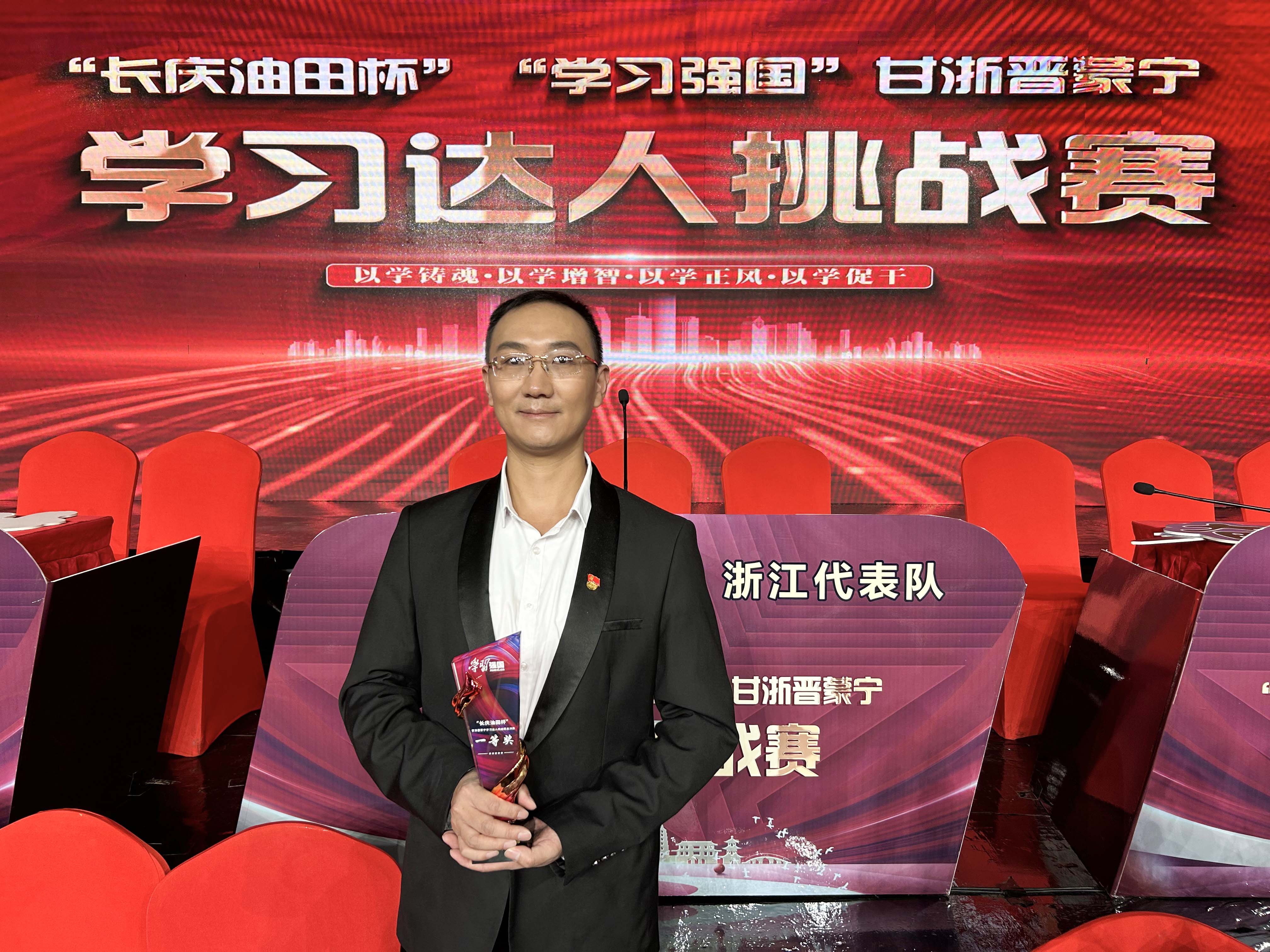 9月26日下午,學習貫徹習近平新時代中國特色社會主義思想“長慶油田杯”“學習強國”甘浙晉蒙寧學習達人挑戰賽總決賽在蘭州舉行,紅船領航隊(浙江代表隊)奪得總決賽第一名。來自嘉興石化的潘平就是紅船領航隊的成員之一。