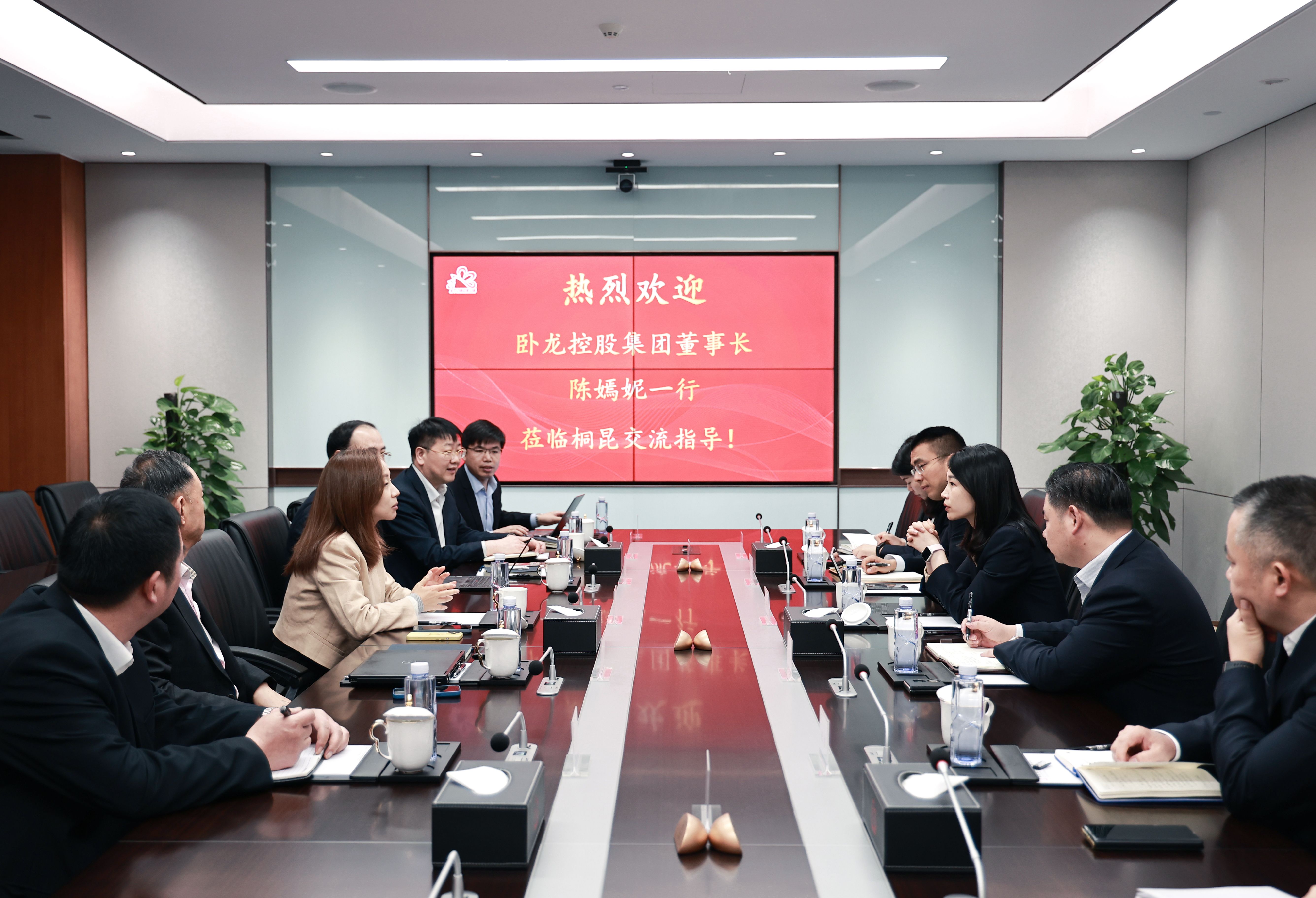 4月15日上午,臥龍控股集團(tuán)董事長(zhǎng)陳嫣妮一行到訪桐昆,集團(tuán)副董事長(zhǎng)陳蕾、副總裁李圣軍等熱情接待并陪同座談。