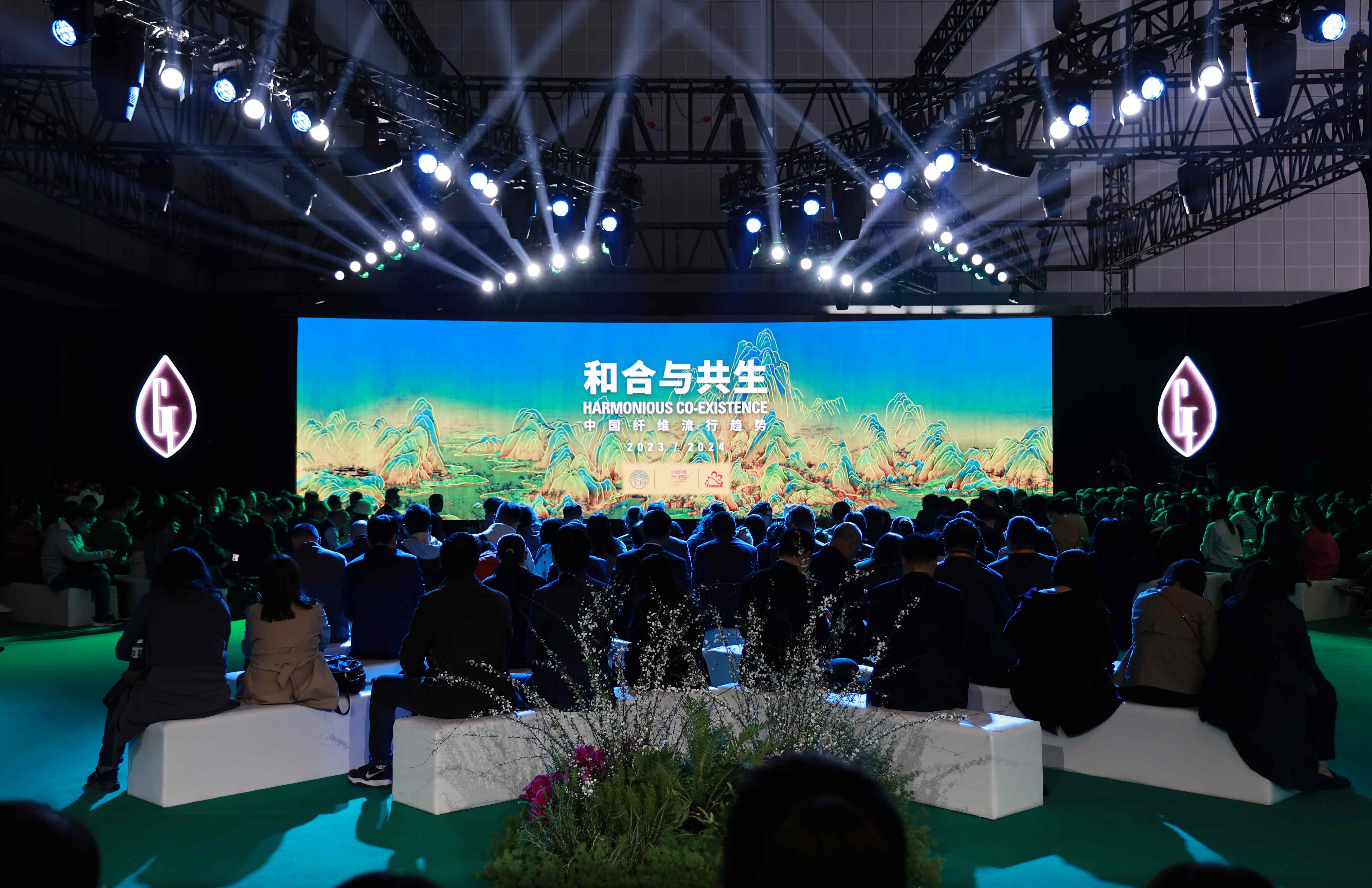 中國纖維流行趨勢自2012年創立以來,經歷十二載的沉淀與發展,現已成為國家紡織行業權威的趨勢發布IP。每年的發布盛會都會聯合影響力卓著的設計師、藝術家、全媒體矩陣呈現一場令人矚目的纖維大賞。本次發布會的主題為“和合與共生”,共發布了纖 · 綠意、纖 · 舒馨、纖 · 無限、纖 · 破壁等四大篇章,并在這一主題背景下,展開對萬物和合、相融共生的深入思考,用全新的理念和潮流美學演繹新國風,詮釋纖維新時尚。