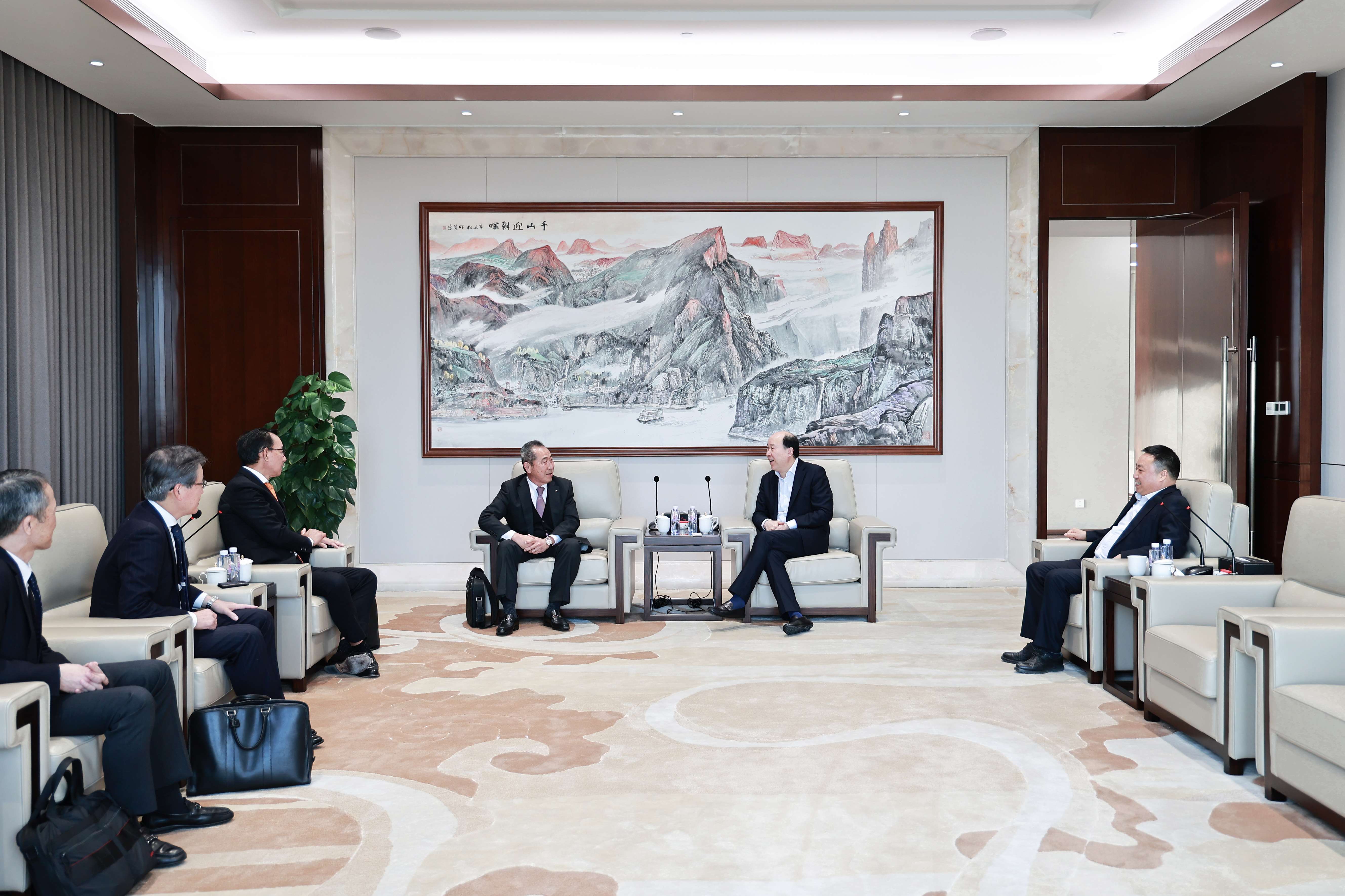 3月13日下午,TMT機械株式會社三木會長、高本社長一行訪問桐昆,集團董事長陳士良、總裁許金祥熱情接待并陪同座談。